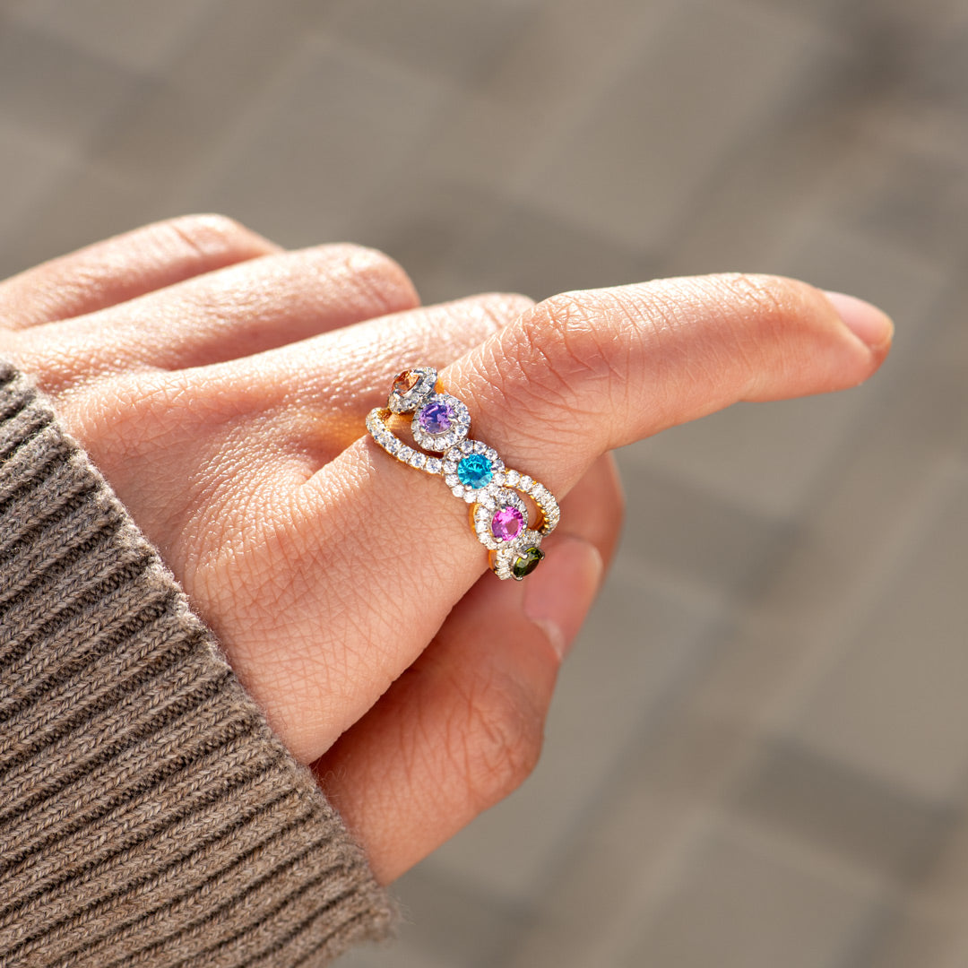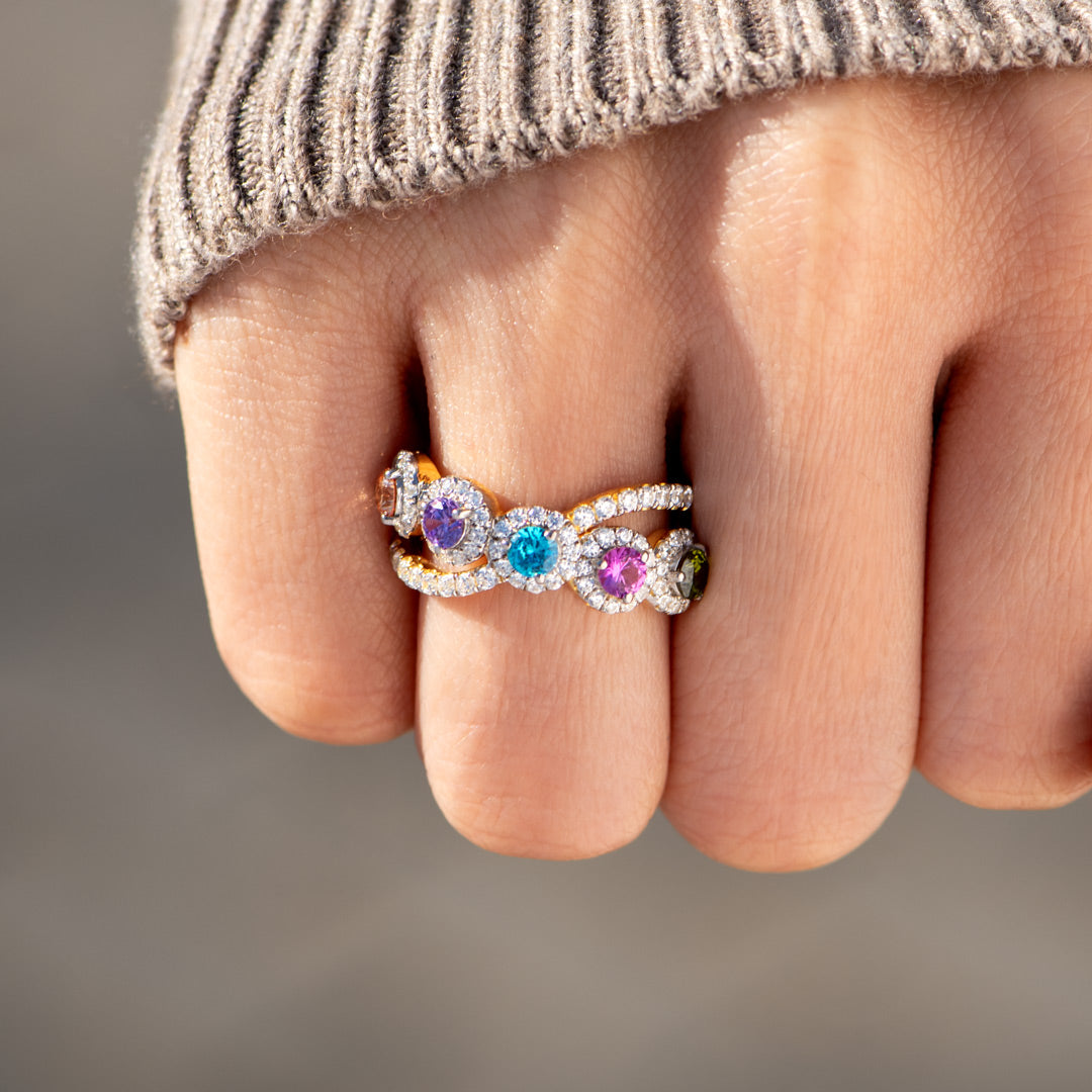 Celebrate the love of family with our 1-5 Birthstones Bezel Set Ring Band, a perfect mother's ring. Personalize with birthstones and create a meaningful piece that represents each child. Show off your pride in a stylish and elegant way. Give a gift that will bring joy and cherished memories.