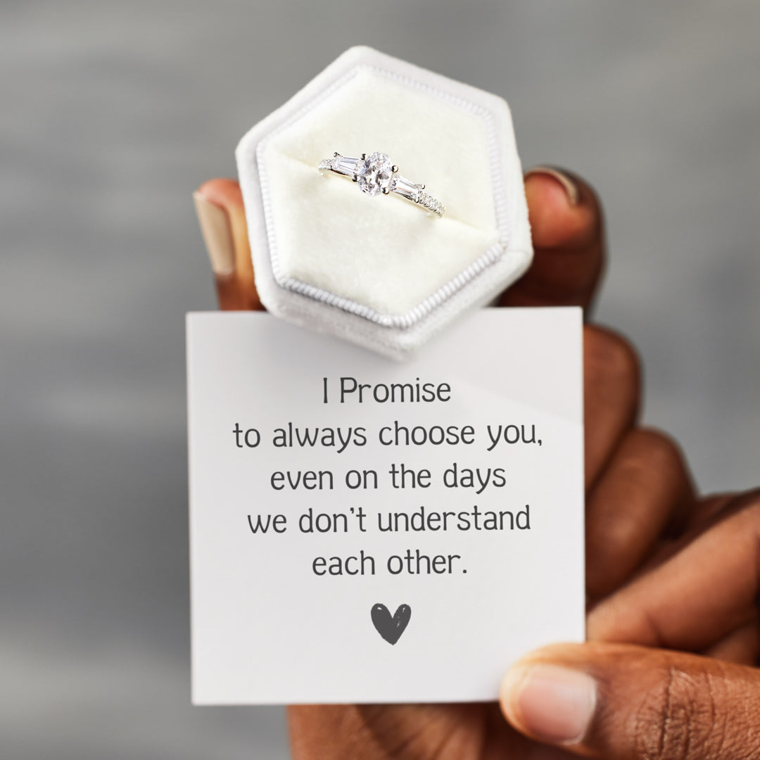 Ameaningful message card included, this dainty oval-cut ring is the perfectgift for your other half. It serves as a reminder of the never ending love between you.