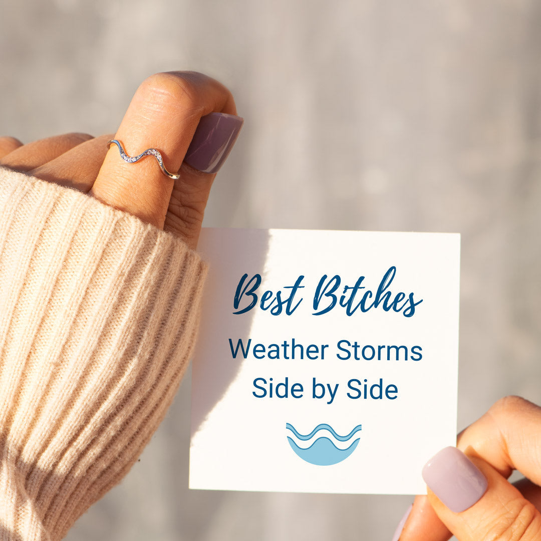 Wave goodbye to boring friendship jewelry with our Best Bitches Matching Minimalist Wave Rings! These sleek and stylish rings are the perfect way to show off your friendship in a unique and fun way. With a subtle wave design, these rings are sure to make a statement without being too flashy. Get matching rings for you and your bestie today!