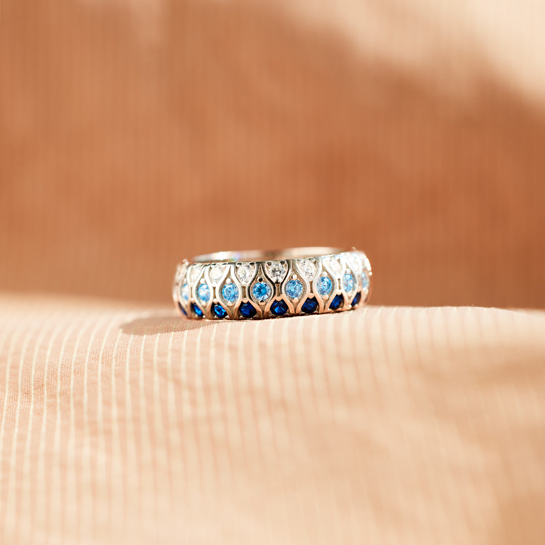Discover a lively hive of engraved crystal clear stones with our fun & unique 'Hive Ring'.