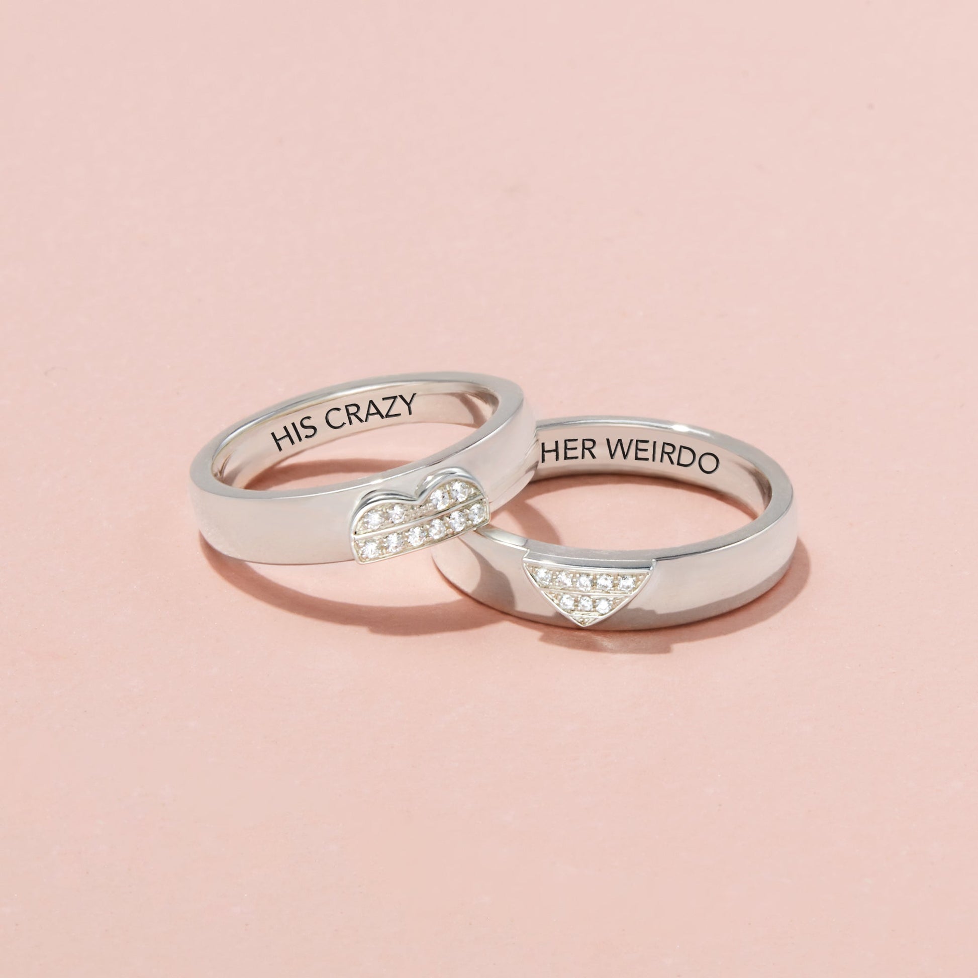 His Crazy/Her Weirdo Heart Couple Ring Set