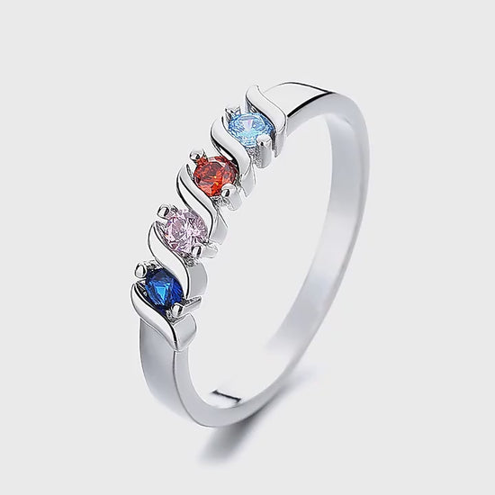 Designed with a graceful wave silhouette 🌊, this elegant piece is adorned with sparkling birthstones of your choice. Each stone represents a loved one or a special date, making this ring not only beautiful but deeply personal.