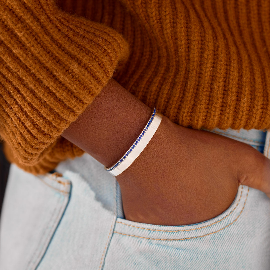 Show your daughter how much she means to you with our 'You're The Best Of Me' bangle. Adorned with a stripe of blue stones and engraved with a heartfelt message, this bangle is the perfect gift to show her that she brings out the best in you.